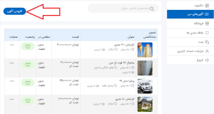 پس از رفتن به داشبورد آگهی ها مطابق شکل زیر به بخش فروشگاه بروید (در گوشیهای موبایل بخش فروشگاه در منوی حساب کاربری قرار دارد)