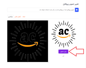پس از انتخاب عکس پروفایل خود و تنظیم اندازه آن مطابق تصویر زیر روی گزینه برش تصویر کلیک کنید.